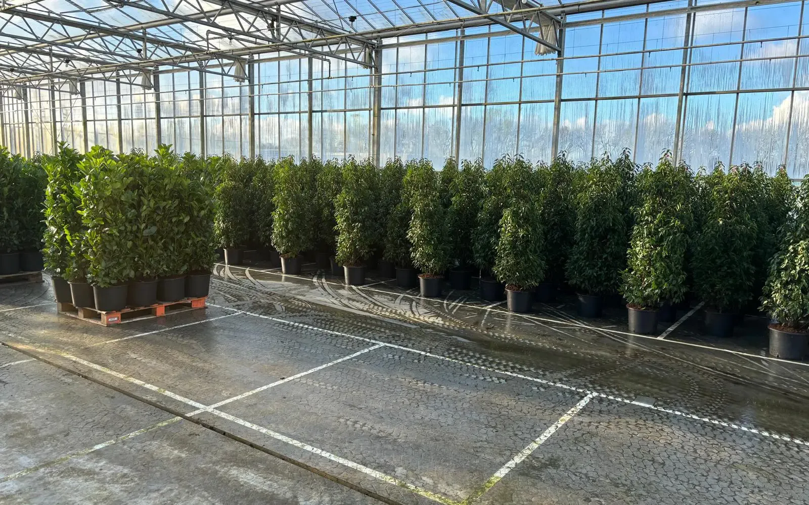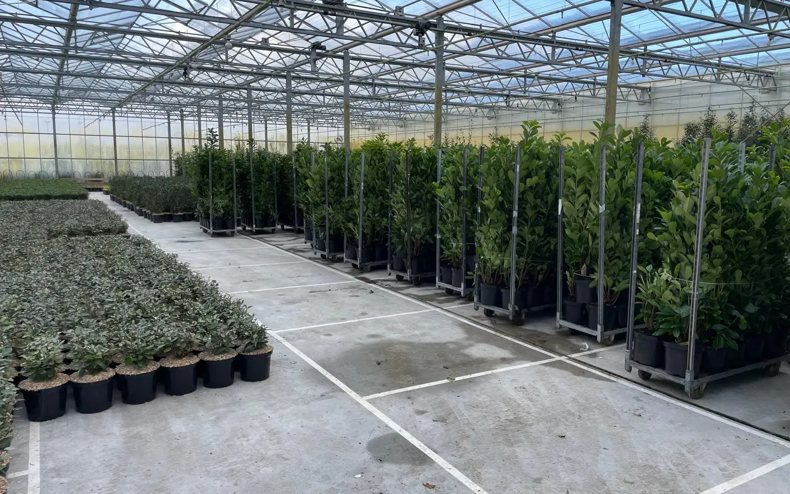 In onze kas telen we een breed sortiment dat we vorstvrij opkweken. Deze planten worden in het najaar en de winter opgepot, zodat we ze mooi fris en in topconditie kunnen uitleveren rond mei en juni. Zo overbruggen we het gat dat ontstaat wanneer planten na eind april niet meer uit de volle grond gerooid kunnen worden. Denk hierbij aan Portugese Laurier, Prunus Rotundifolia, Choisya’s en Fatsia’s.