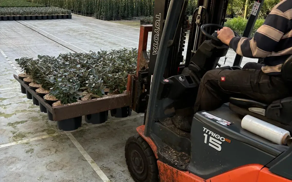 Tegelijkertijd nemen we leverbare planten van de kwekerij mee terug naar De Bilt voor uitlevering aan klanten daar. Zo creëren we een logistieke win-win: volle vrachten heen, volle vrachten terug.