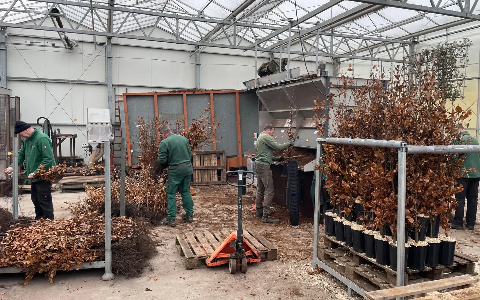 Voor ons team is het bovendien afwisselend en motiverend om met andere werkzaamheden bezig te zijn en gezamenlijk een mooi eindproduct te realiseren. Vóór de vorstperiode worden vorstgevoelige planten binnen opgepot in de kas, zodat ze rustig kunnen doorgroeien tot goed doorwortelde, leverbare planten in het voorjaar.